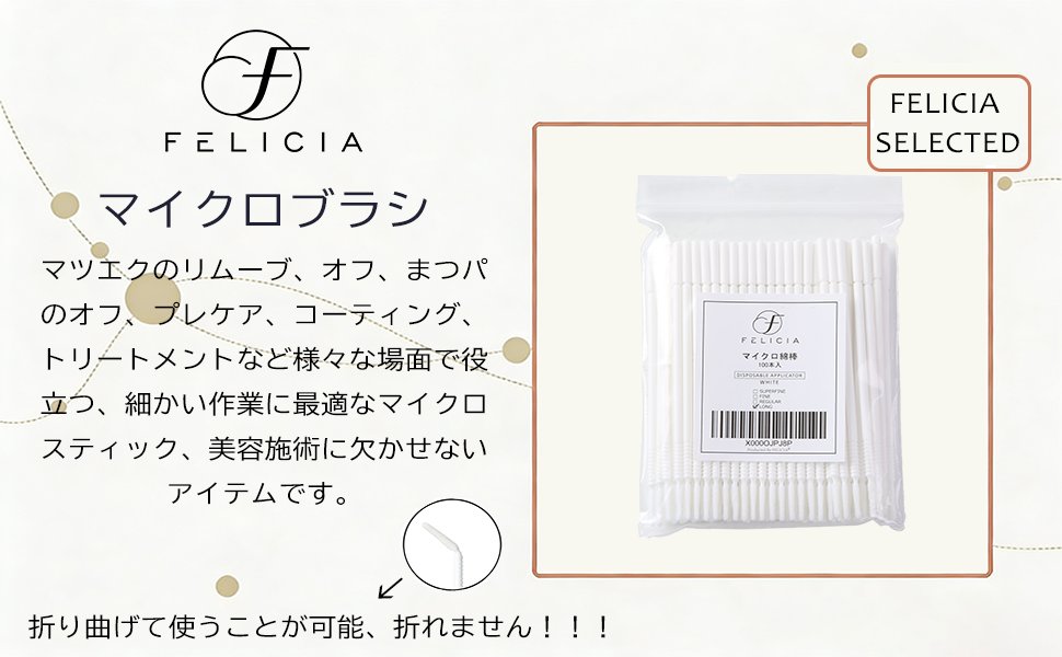 FELICIA COSMEマイクロ綿棒 マイクロブラシ まつげアプリケーター マイクロスティック ロング ホワイト